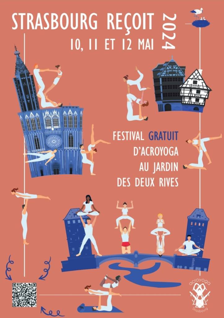 Chaque année, l’association AcroYoga Strasbourg organise « Strasbourg Reçoit », un festival d’acroyoga en plein air, convivial et entièrement gratuit, qui a lieu le weekend du 8 mai à Strasbourg.