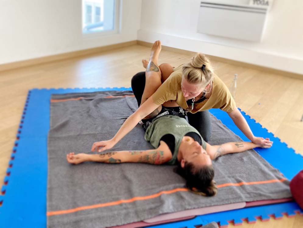 Le massage thaï se fonde sur la théorie de lignes d’énergie liées au corps. Il s’agit d’un massage très complet qui vise à relaxer à la fois le corps et l’esprit. Il s’effectue au sol, en duo, par le biais de postures inspirées du yoga. Le thérapeute propose des exercices d’étirement dynamiques et fluides afin de redonner souplesse et mobilité au corps. Le travail sur les énergies s’effectue par divers manœuvres, massages et pressions sur des points d’acupuncture précis. Cette technique de massage est souvent utilisée comme une approche complémentaire par différents physiothérapeutes.